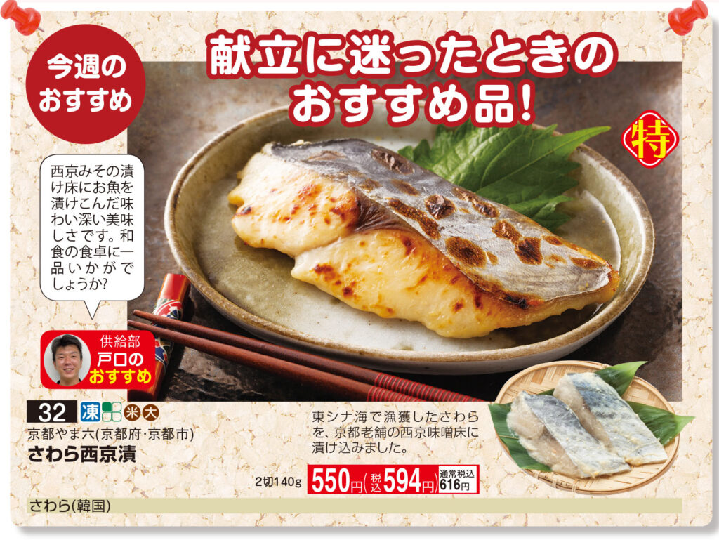 一昼夜ゆっくりと熟成させる「本漬け」により切り身の内部まで味が浸透。豊潤な西京味噌本来のおいしさが生きた西京漬をご賞味ください。